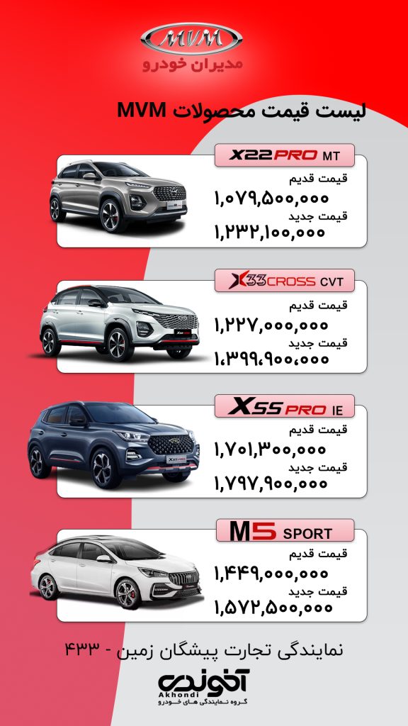 شرکت مدیران خودرو قیمت های نهایی محصولات خود را در شهریور 1404 به ترتیب ذیل اعلام کرد: